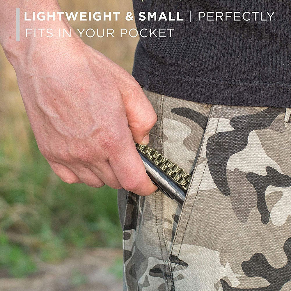 - 5ft Paracord included, gives you the ability to attach it quicky and easily to any camping gear. Comes with a striker attached to the paracord, always be prepared to start a fire.